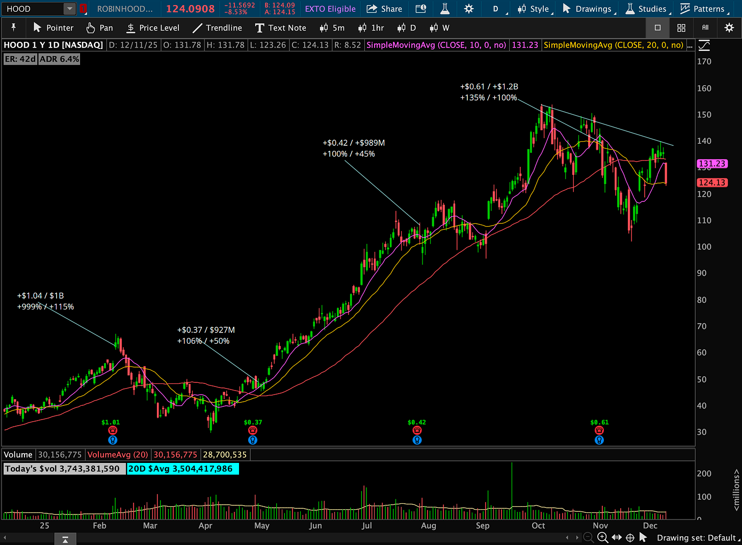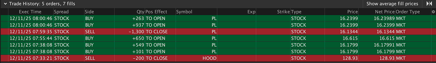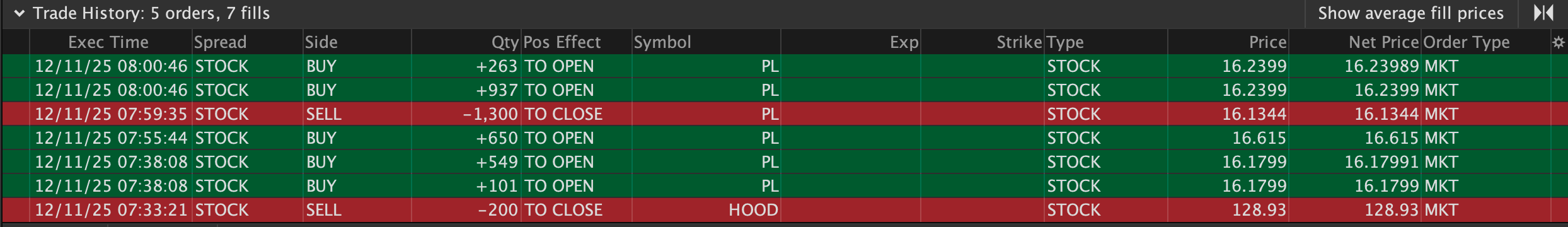 HOOD have been long from around the 50ma area. This morning it gapped down and as soon as it didn’t quickly reverse, I cut it for a small loss. Looks like it may need a bigger digestion.