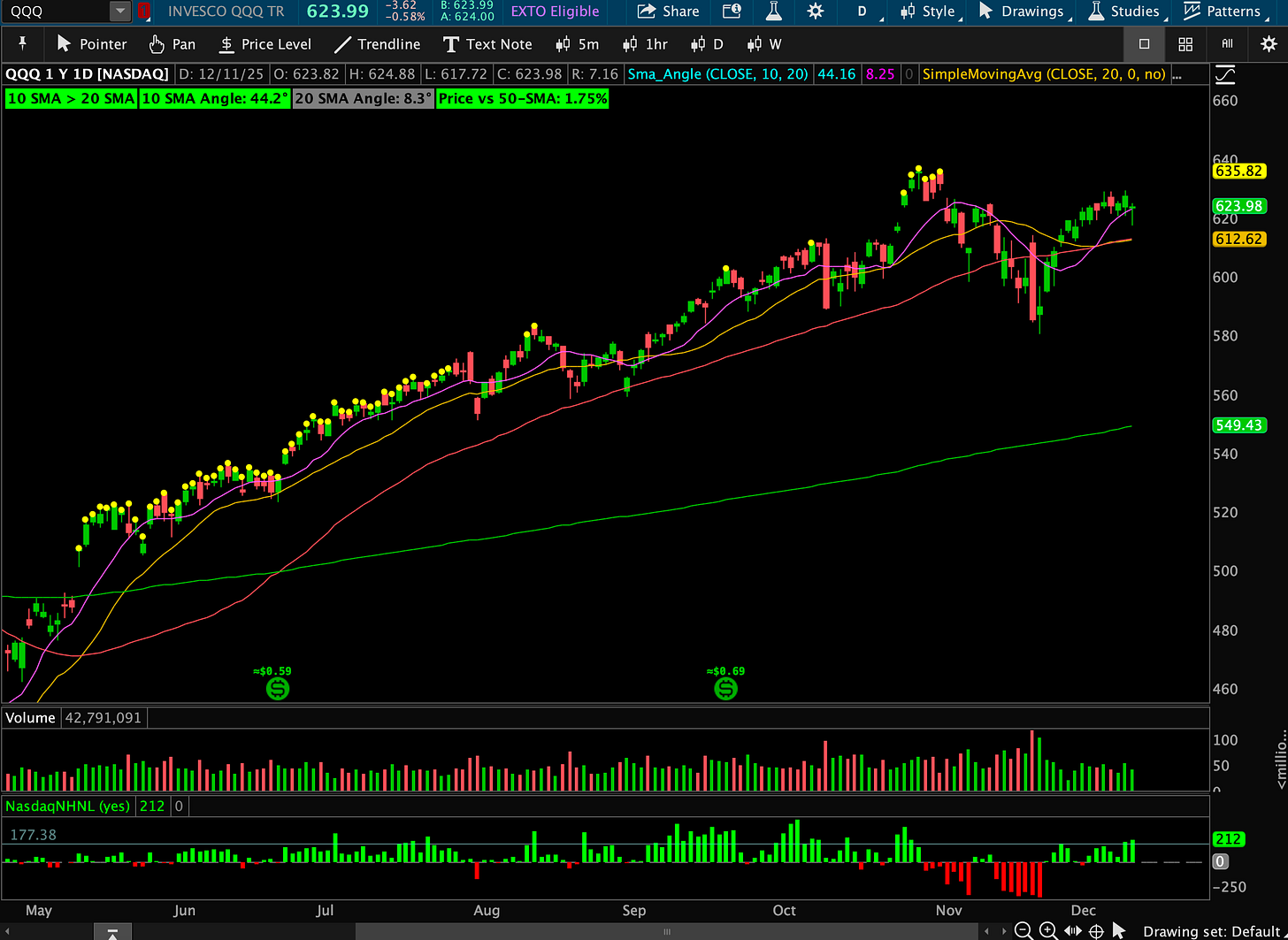Gapped down overnight got initially sold off in the morning session, and bounced to the 10ma. Currently being supported by great breadth under the surface. This marks two back to back high breadth days which is good to see.