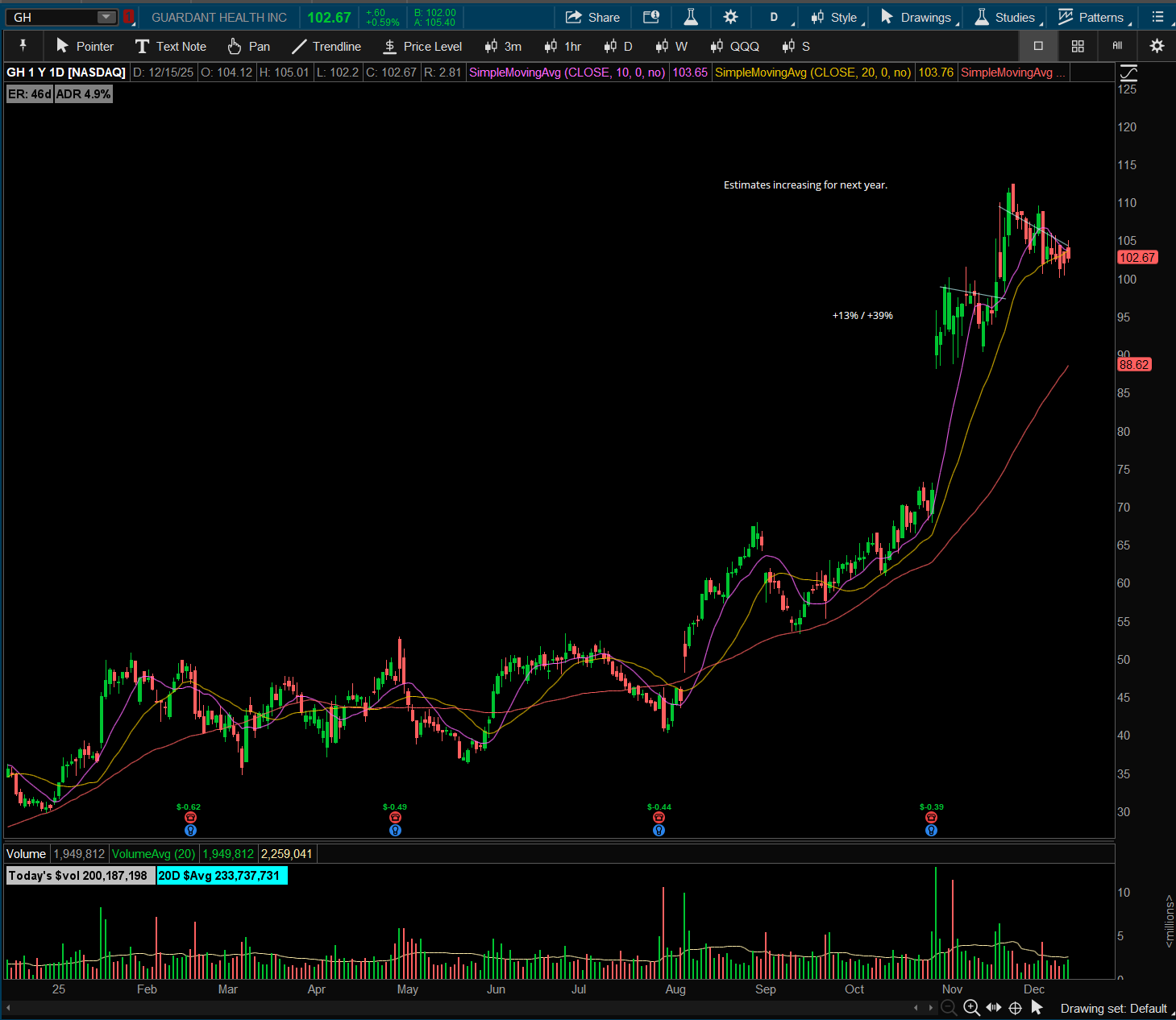 GH has been starting to surf the 20ma recently. Took a small long position around yesterdays high, and sold it for a scratch leading up to the close.