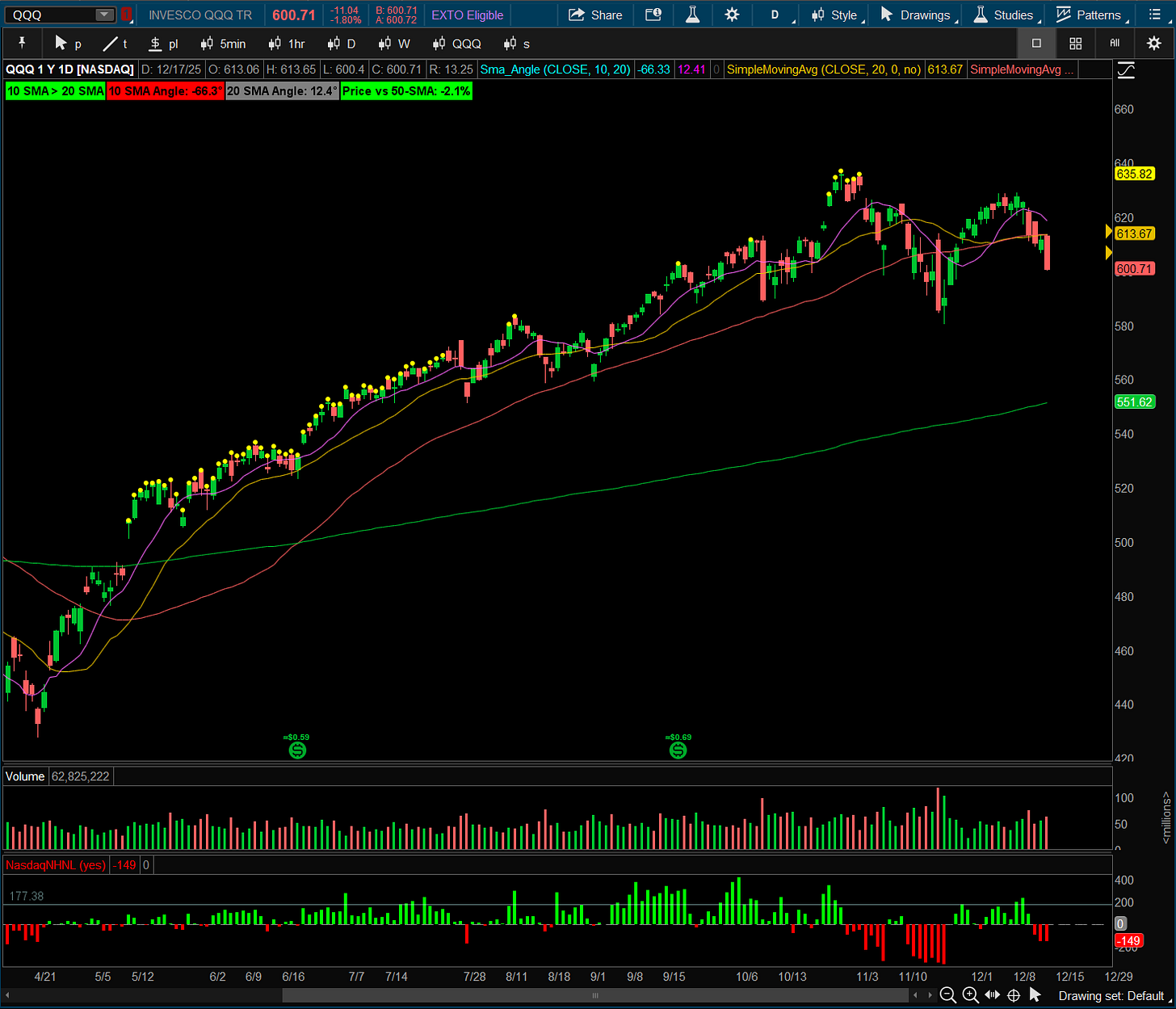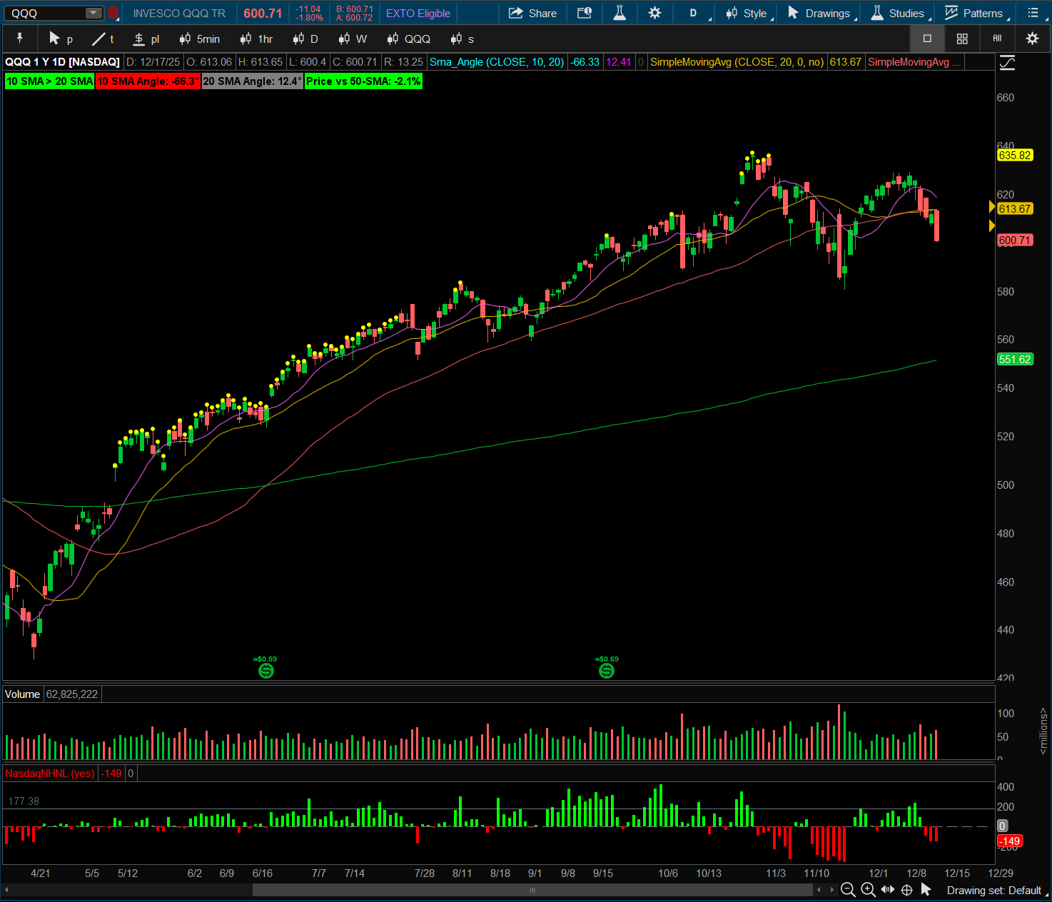 10ma continues to slope down. 20ma and 50ma are flat. Not a good environment for swing trading on the long side.