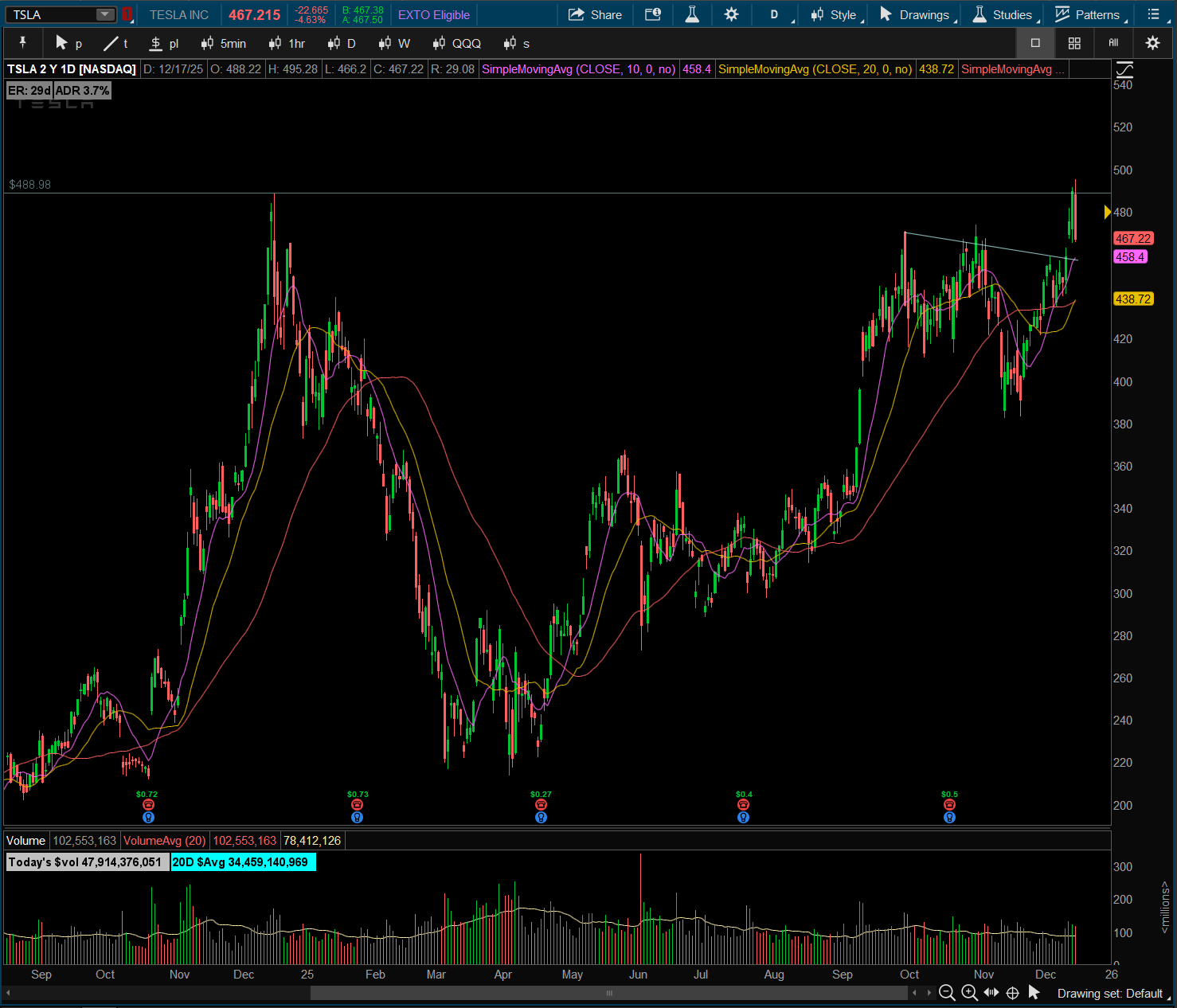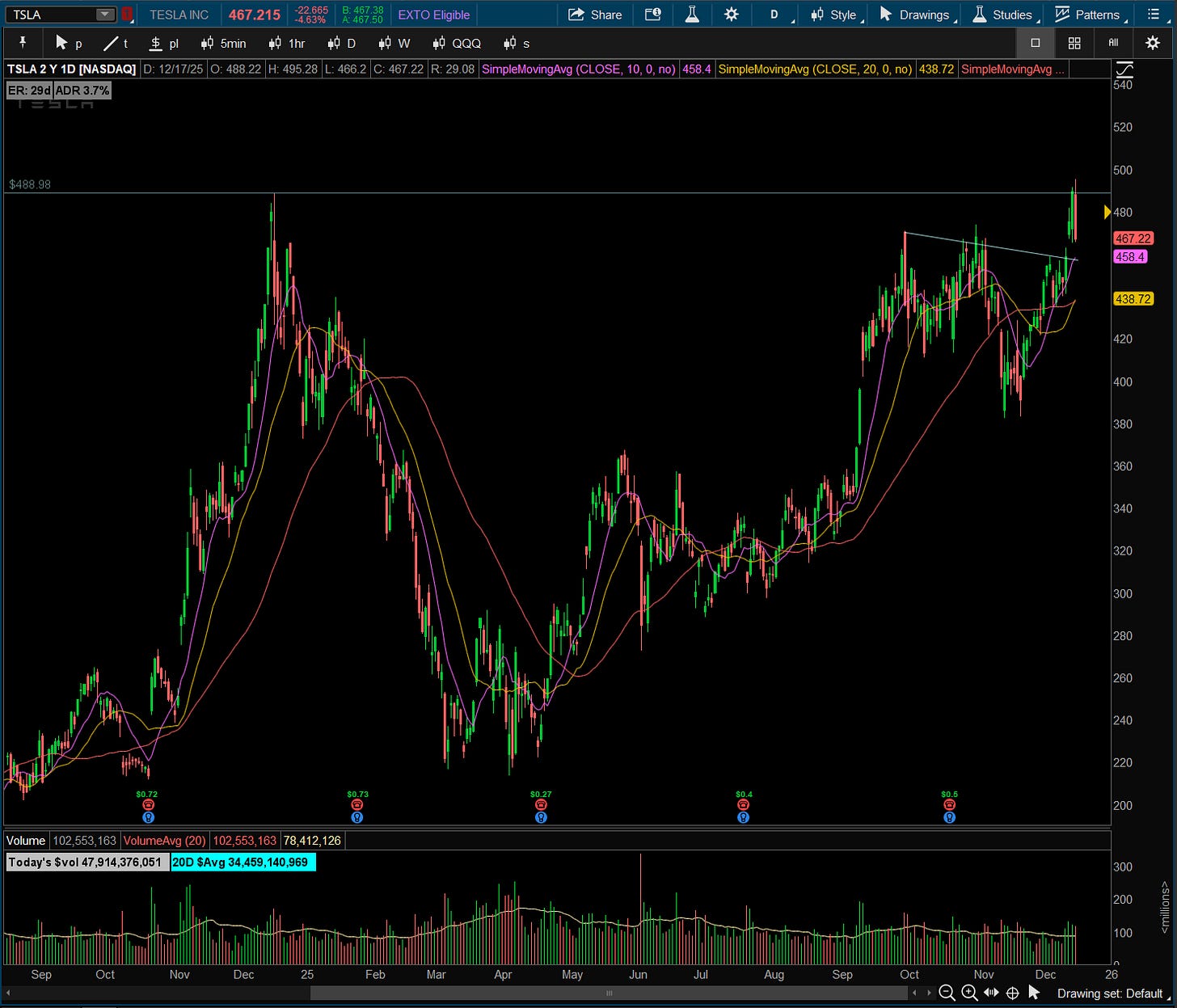 Took an add on TSLA in the 475s, as it’s the leader trying to come out of a 12 month base. Doesn’t look like it was the best decision as it closed way at the lows, and its a bit extended at the moment. Will let it trade from here. Not looking to baby it as it can be a really big opportunity.