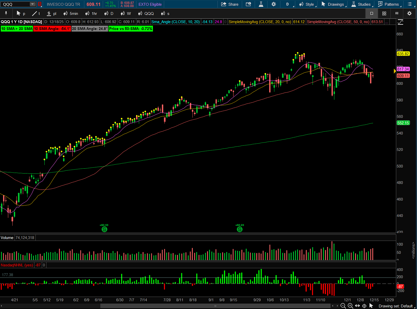 10ma continues to slope down. 20ma and 50ma are flat. Not a good environment for swing trading on the long side. Even though there might be some bullish action and setups, there still isn’t enough for me to start putting on new positions.