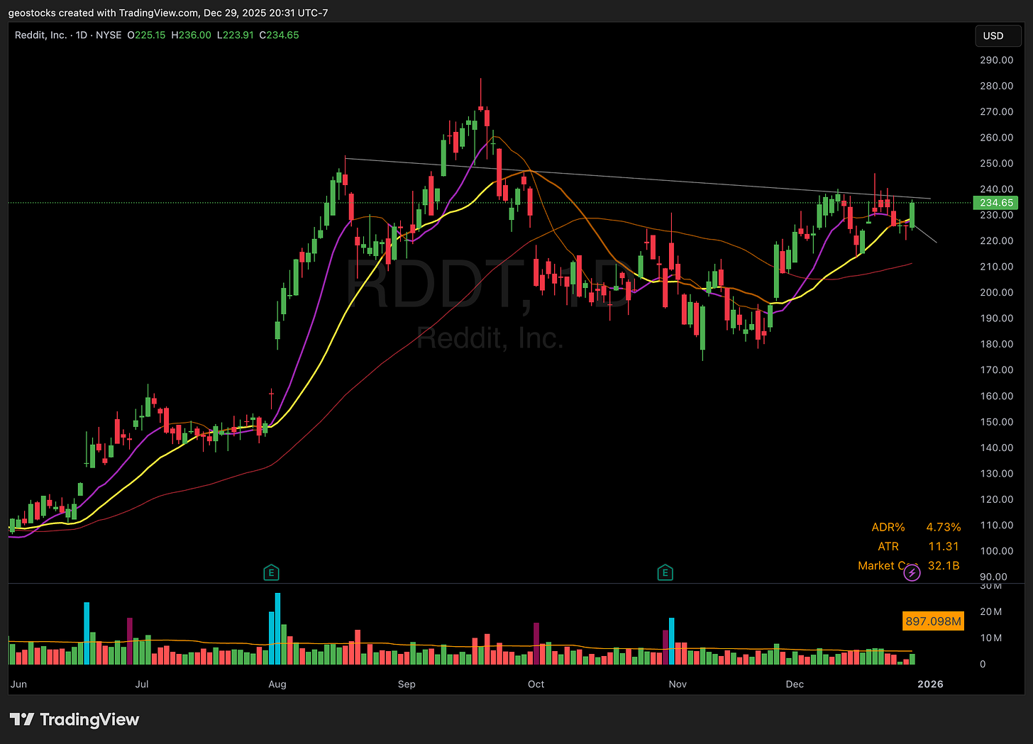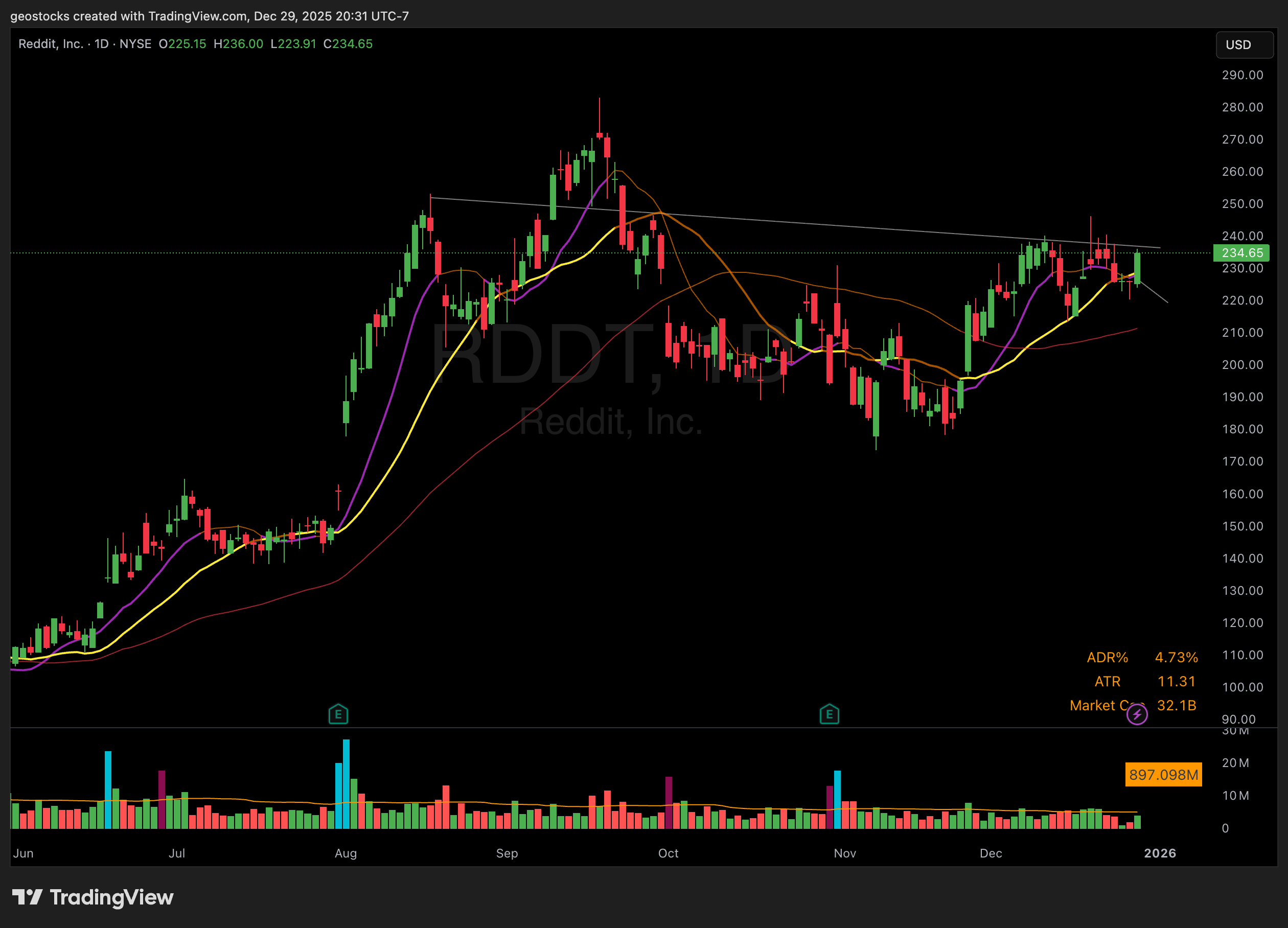 RDDT bought on the range break at the 20ma. Sized it to a half size position.