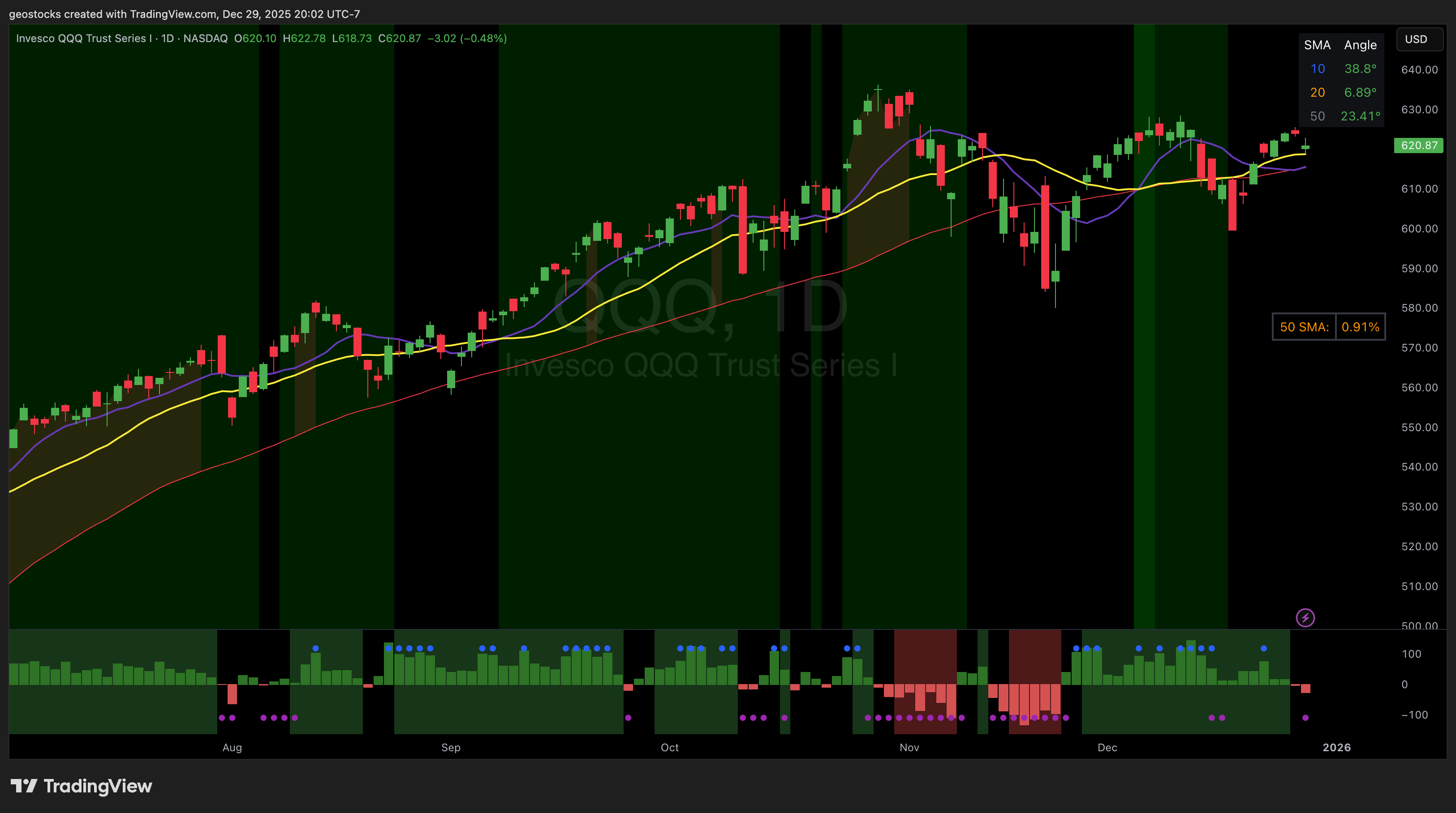 The angle of the 10ma is improving, the 20ma is sloping up and the 50ma is starting to turn up. Market conditions continue to improve. Still too early to call it a momentum market, but I do think things can set up for another leg higher.
