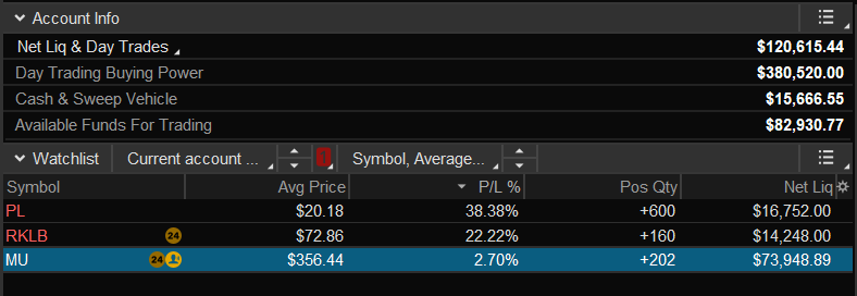 No trades taken today. Really considered selling MU at the close though. Moved my stop close to my average, so if I take a loss on the trade it will be less than .25% loss.