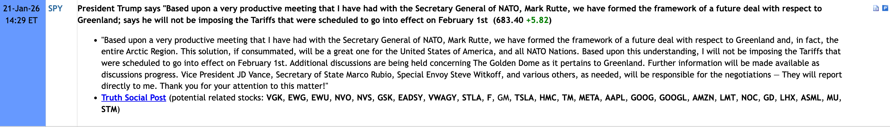 Gapped up and got bought up in the morning session. In the afternoon, the index was about to roll over, it even went red at some point until the news hit the tape: