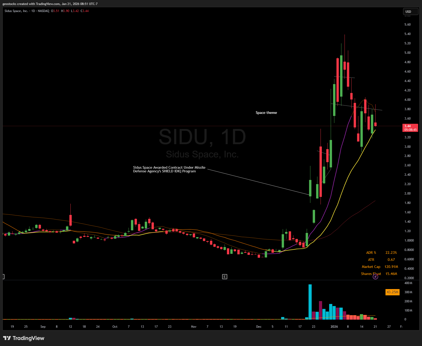 SIDU tried this one as it was crossing over red to green. Quickly sold it for a small loss when it pulled back as I wanted it to work right away. Space Theme.