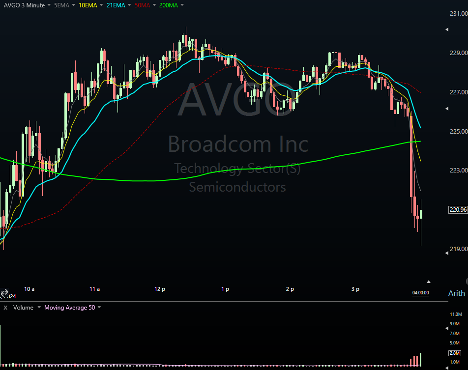 Needless to say, AVGO was doing great all day untill it closed weak and stopped me out Lol. Fully cash now.