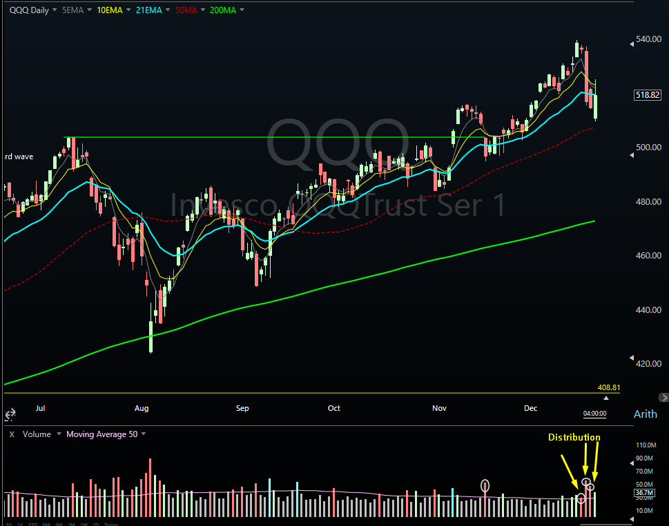 Market overall: The Nasdaq ended up closing just about under the 21ema as we started seeing downside pressure and distribution a day before FOMC. The post FOMC action was confirmation and really unwinded a lot of laggards, while some leaders are trying to hold their gains. Friday came around and gave a relief rally, which followed an end of day pull in certain stocks.