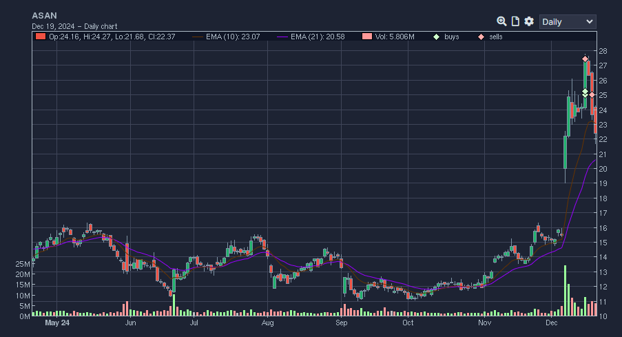 ASAN 0.00%↑ - was long from the last weeks post earnings flag break. Took gains on the way up and cut the rest at break even once it came down to my cost.