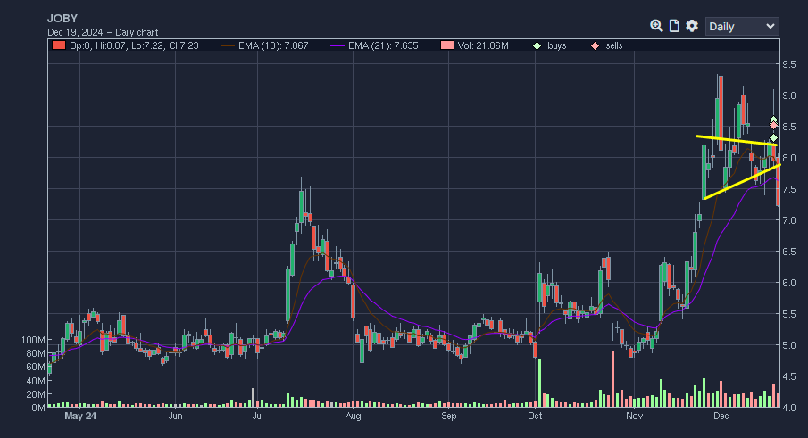 JOBY 0.00%↑ - was tracking ACHR and JOBY as they were attempting to break out. Got long and it started to reverse during FOMC so I cut it for a small gain.