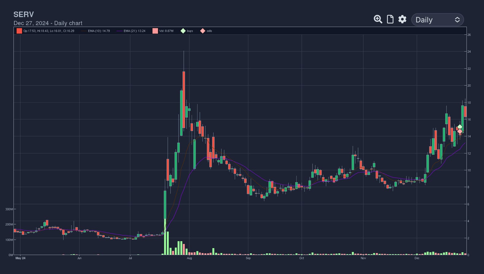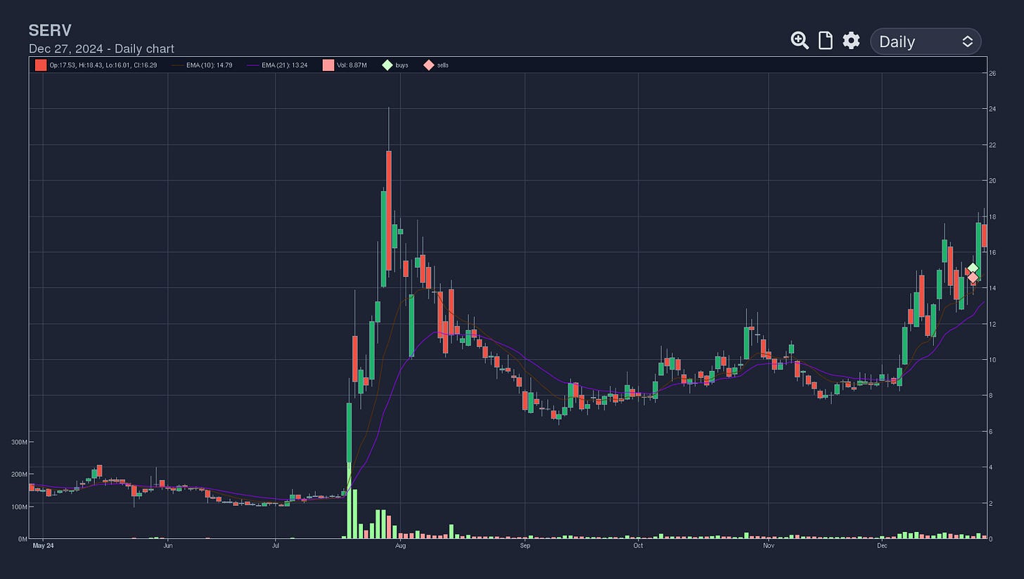 SERV 0.00%↑ - bought it was it was breaking a range and got quickly stopped out. Did re-enter next days session.