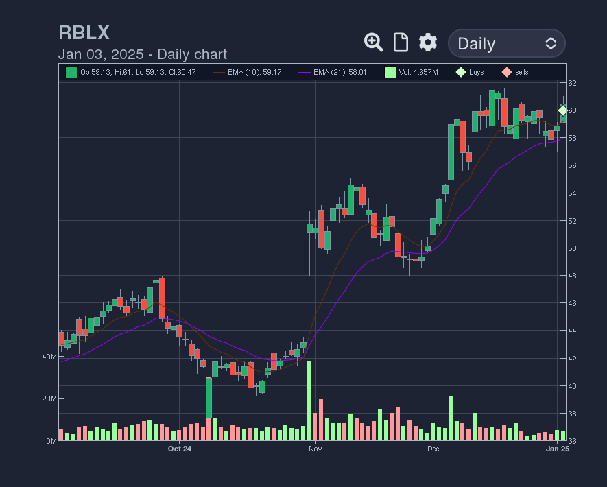 RBLX 0.00%↑ - one of the stronger names in the market that has barely pulled back to MA’s while the index visited the 50. Entered long on Friday at the $60 pivot. Didn’t do much all day but willing to let it work if it’s going to slowly start moving.