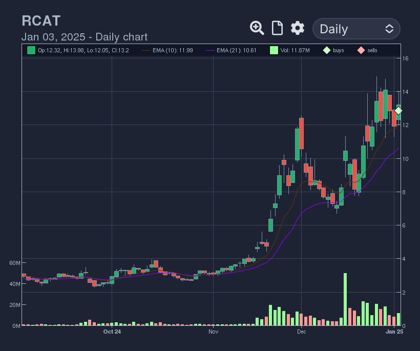 RCAT 0.00%↑ - Big move and consolidated based on the drone theme. Tried to break out of a flag off the 10ma on Friday so entered on the range break. Drone theme still very strong as most are flagging. PDYN is my next favorite name in the drone space as they also have a robot business, and are an AI company. Willing to let RCAT play out.